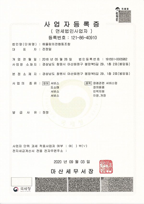 • 사업자 등록증